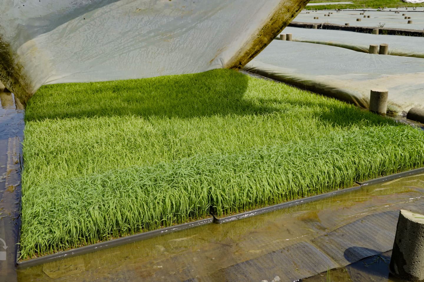ある程度成長した苗は、シートをめくると辺りを奇麗な緑色に染めます。