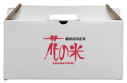 花の米3合×3袋や花の米切り餅5枚入りなどは、花の米オリジナルBOXに入れて発送いたします。