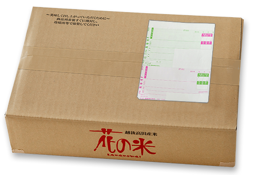 花の米の発送はご注文内容によって下記の発送形態(荷姿)にて発送いたします。ご贈答用などの際はオリジナルの包装しにてギフト用にラッピングいたします。のし紙にも対応しておりますので、お気軽にお申し付けください。