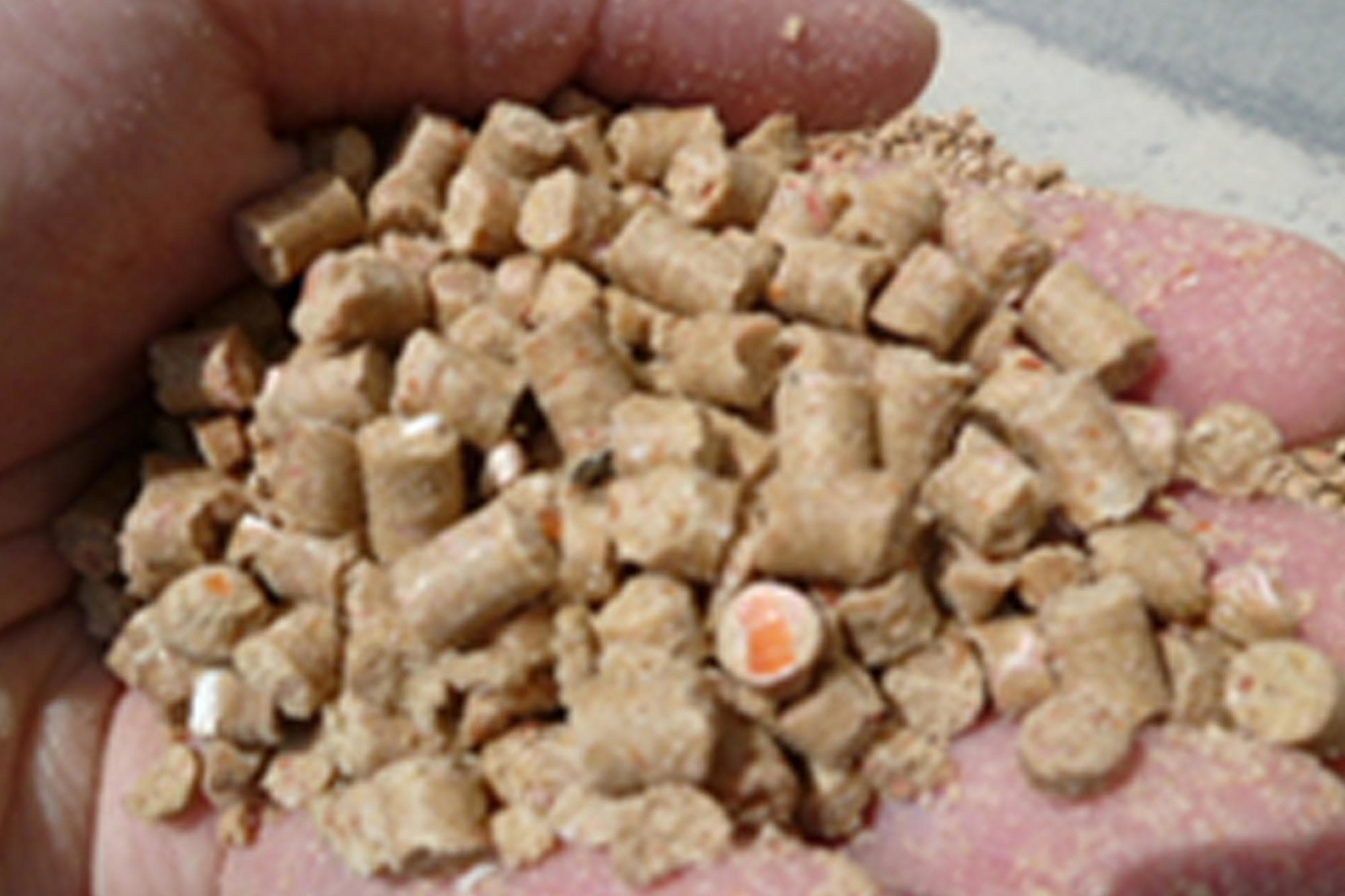 天然素材のかに殻と米ぬかを混ぜ合わせ、肥料として扱いやすい形へと固めていきます。ここでもきちんと形になっているかどうかの注意が払われます。