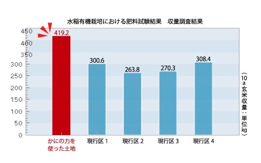 じょうえつ東京農大の肥料試験により、かにの力を使っていない畑の平均を大きく上回り、 |