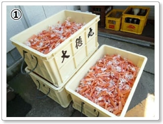 1つの所に集められたかに殻は、乾燥機の中へ運ばれていきます。なんとここでは7時間以上もかけてかに殻を乾燥させます。 ここでの乾燥は、肥料の仕上がりにとても重要になってきます。作業員がきちんとした管理の中で、かに殻に乾燥をかけていきます。