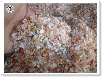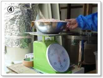 肥料に虫がつかないように米ぬかと、一定の割合で砕かれたかに殻と混ぜていきます。全てが天然素材で出来ているので、とても安心してご利用頂ける肥料となっています。