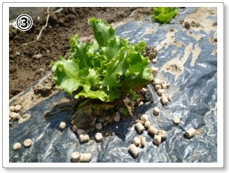 さらに土の上や野菜の上に「かにの力」をまくと効果を高めることが出来ます。