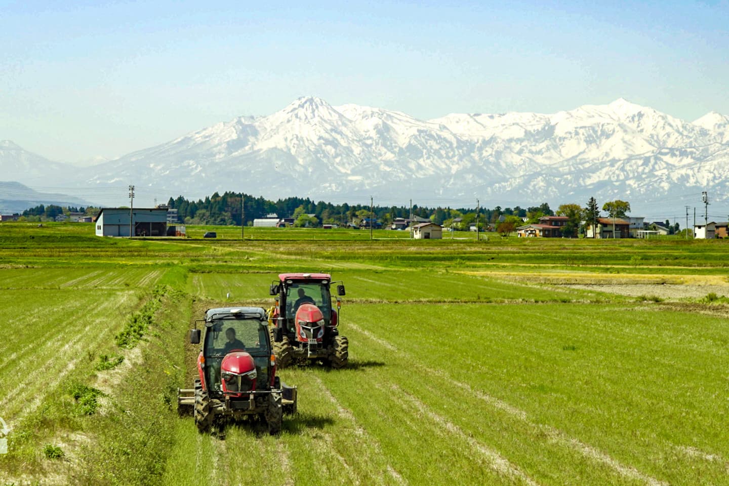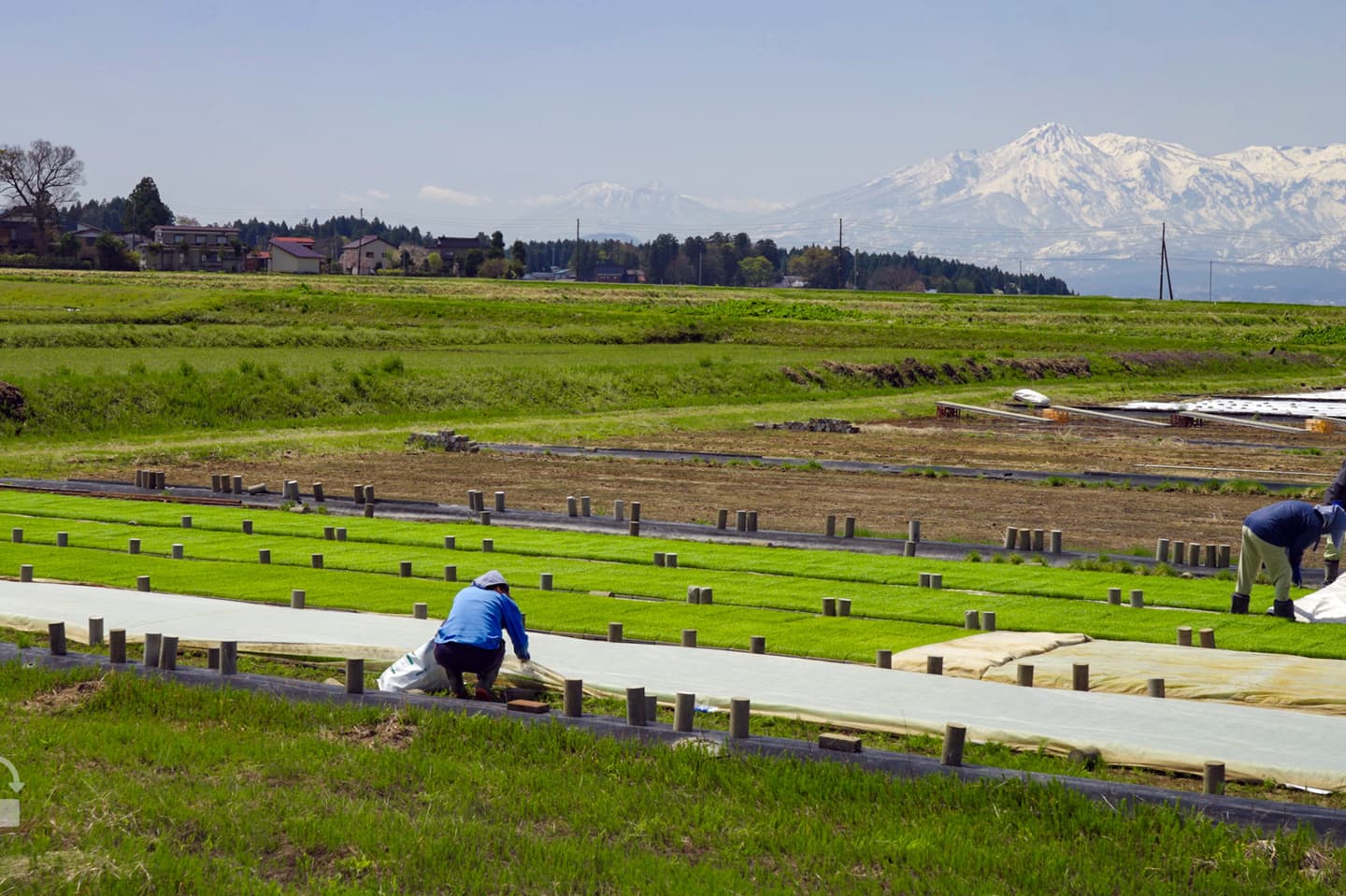 まさに田んぼに春がきた瞬間です!これまで長い冬で雪に覆われていた田んぼに緑が帰ってきました!