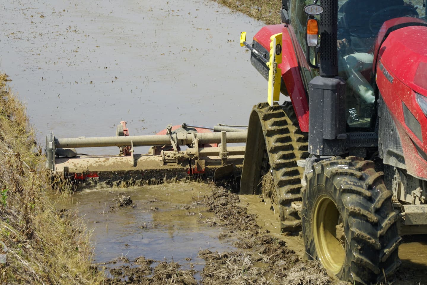 そこで、トラクターで田んぼを深く耕すことで、土を柔らかくし空気を含ませることで、田んぼに命を吹き込みます。