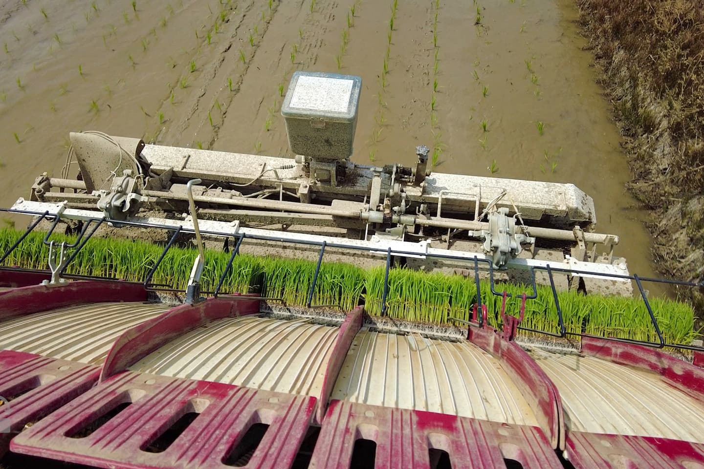 この日までにしっかり成長した苗を田植機にセットし田植えが始まります。
