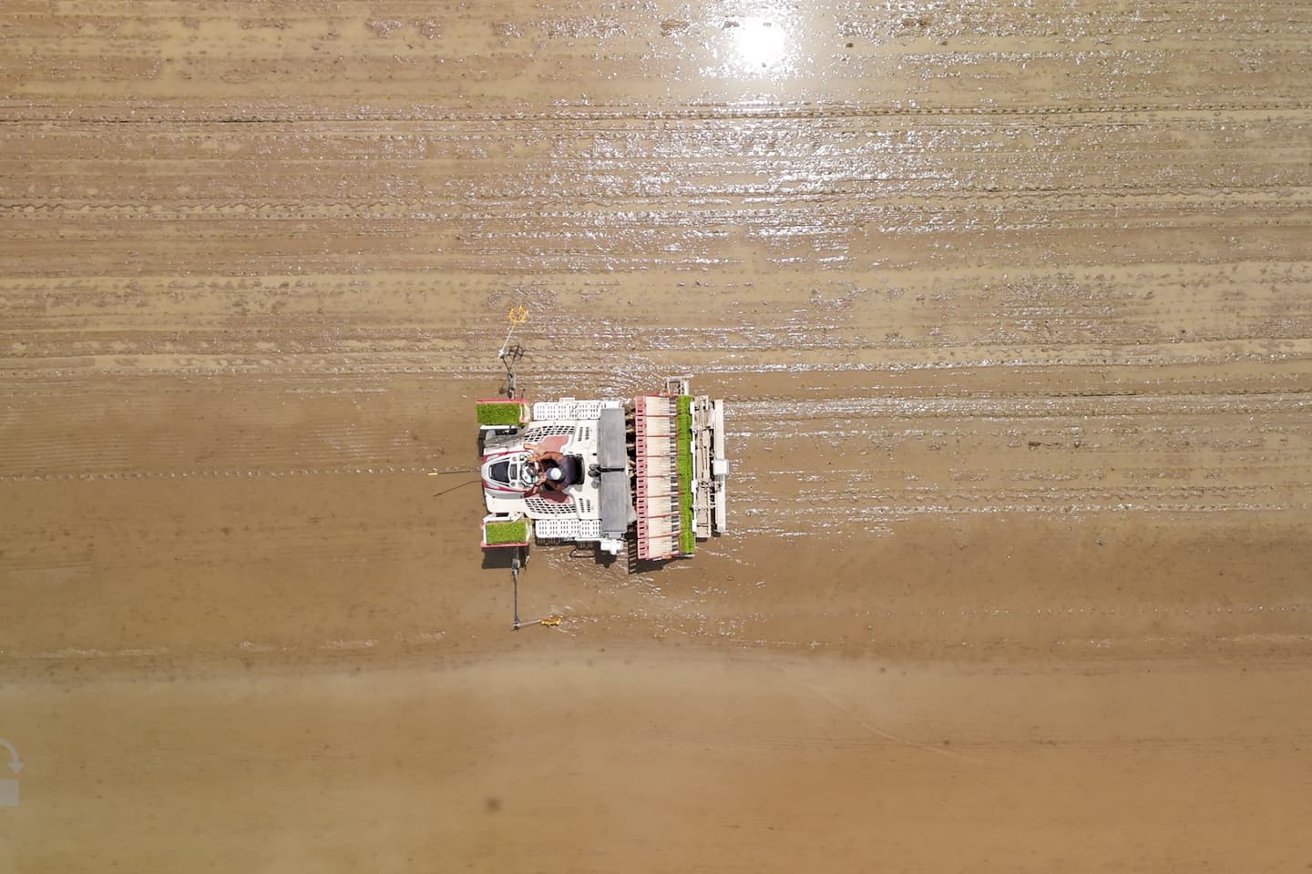 柔らかくなった田んぼに田植機で丁寧に植えて行きます。